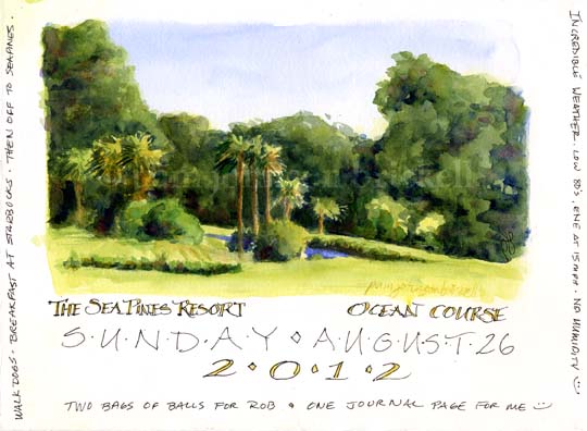 As I painted, I found myself thinking of what it was like when men and women first encountered these habitats, and how their environment shaped their days and nights. Another artist and I walked out into grasses, which was hard going. They were taller than they looked, head height and higher in some places, the ground so low that we couldn’t get to a vantage point for painting. I settled for coming back to the road and painting along the edge, while she remained, creating a lovely intimate watercolor of grasses framing a clear blue sky.