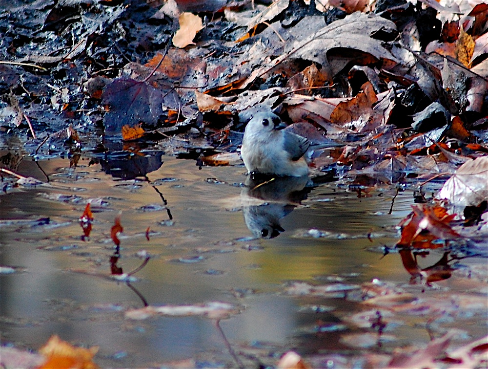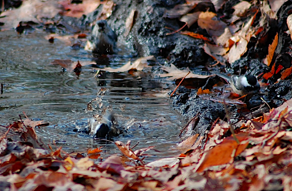 | I think there was going to be a party because the Tit Mouse and Chickadees were having a ball getting clean. |